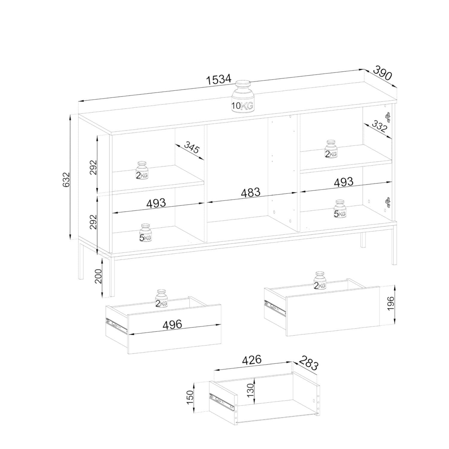 - Szerokość 153,4 cm
