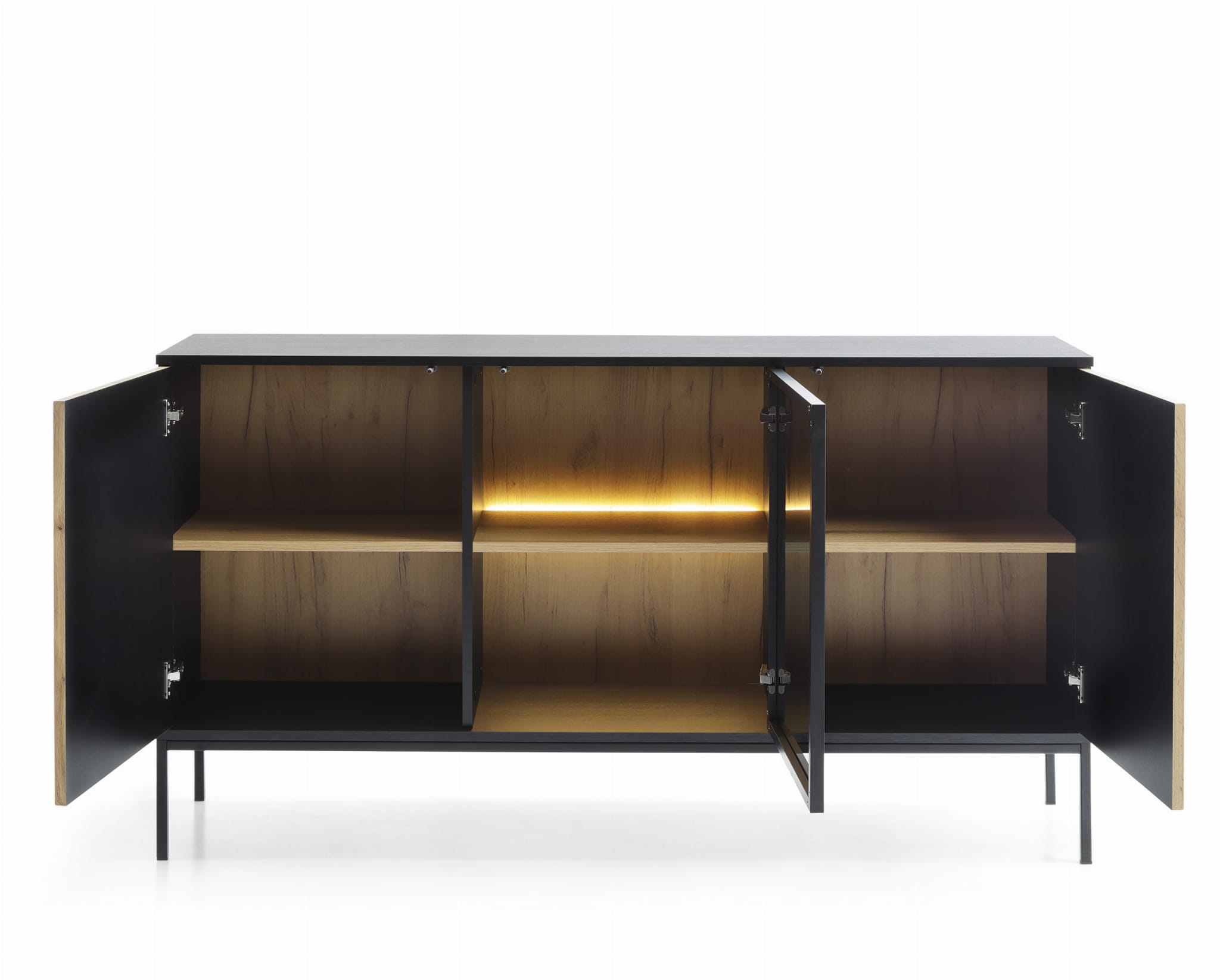 Komoda SIENTO to mebel stworzony z myślą o potrzebach użytkowników. Komoda jest dostępna w eleganckim połączeniu kolorystycznym czarnego grafitu z dębem wotan, co nadaje wnętrzu nowoczesnego charakteru, doskonale komponując się z różnymi aranżacjami.