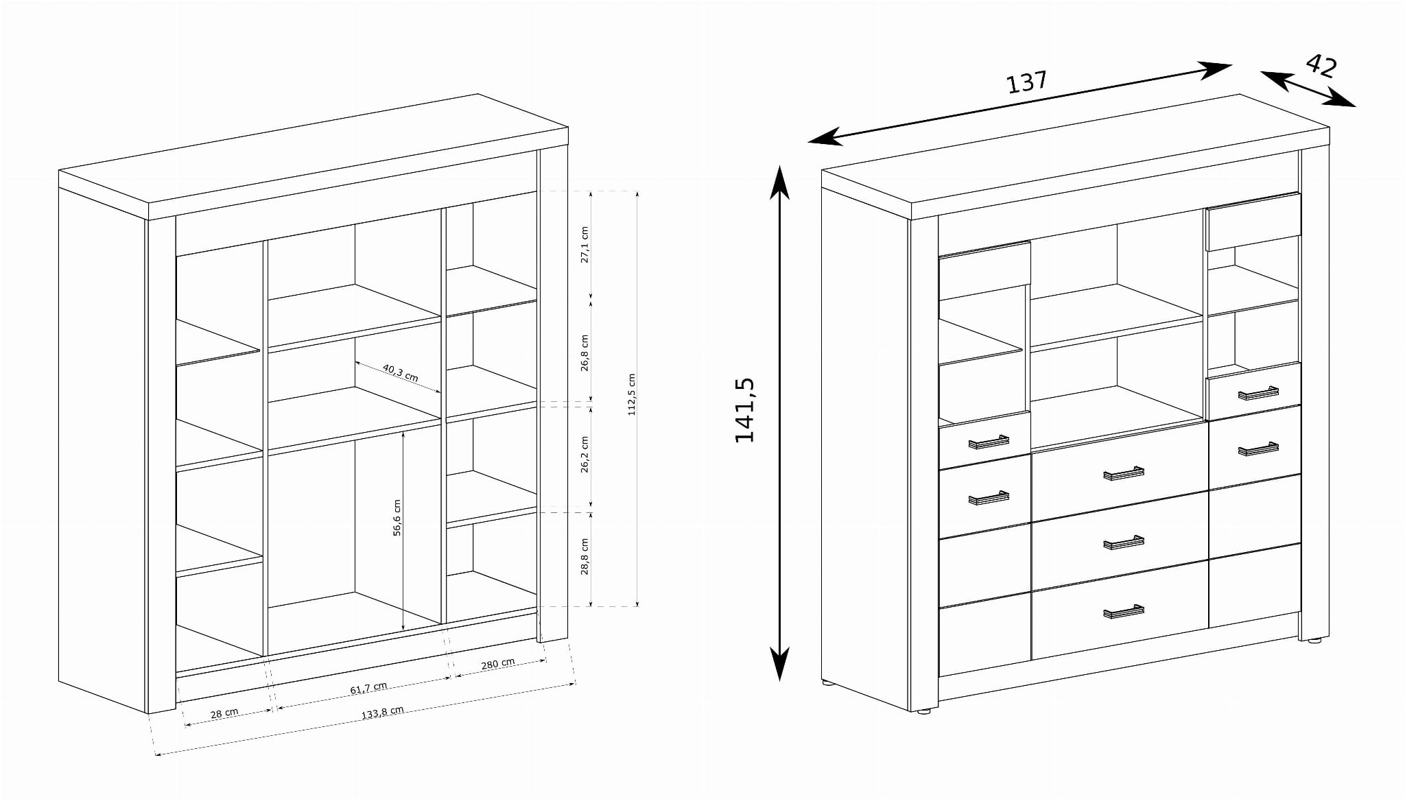 - Komoda wysoka z szufladami INDIANA: szer. 137 / wys. 141,5 / gł. 42 cm