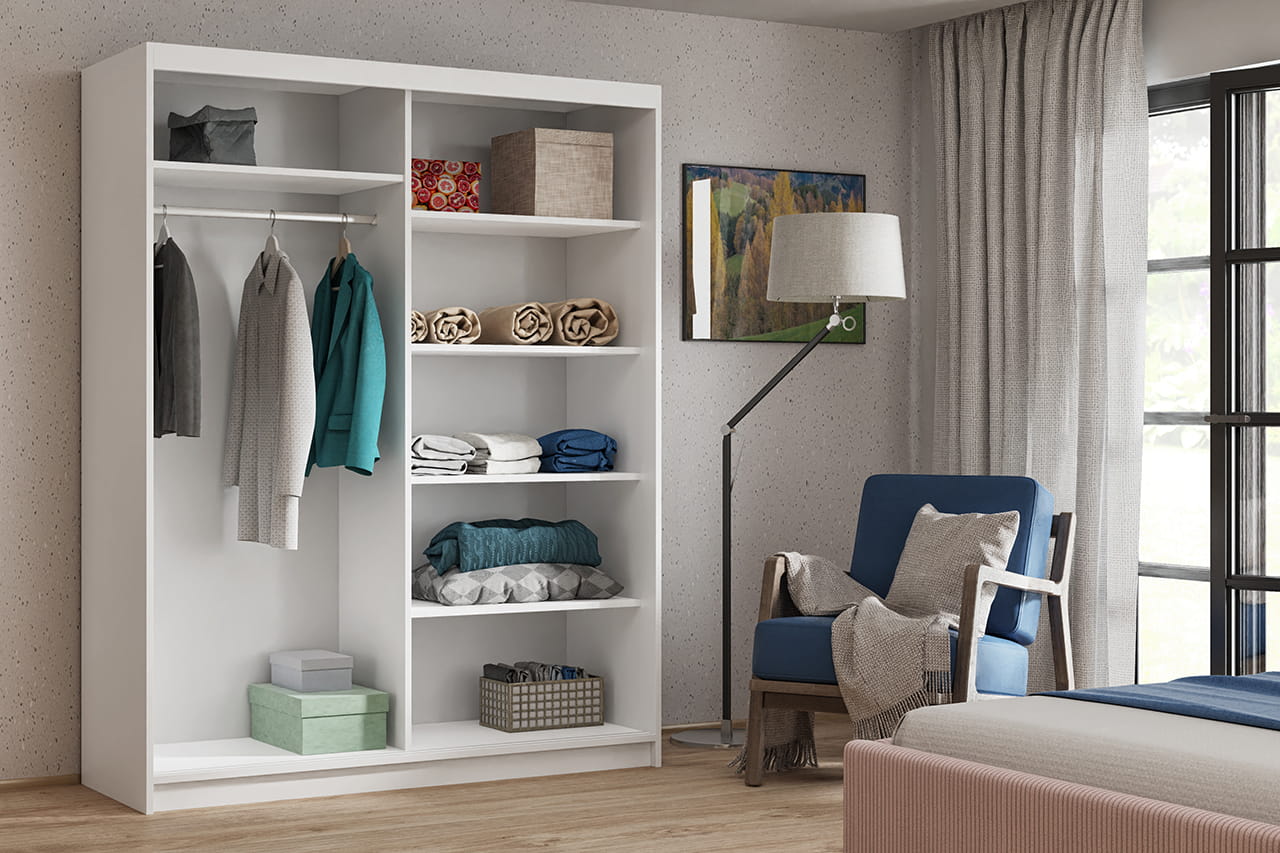 Przestronna szafa przesuwna HANIA 180 w białym odcieniu