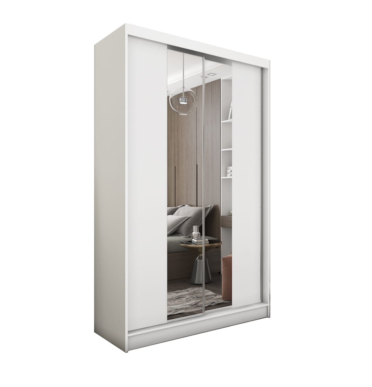 Biała szafa przesuwna z lustrem LIZA 150 – funkcjonalność i styl