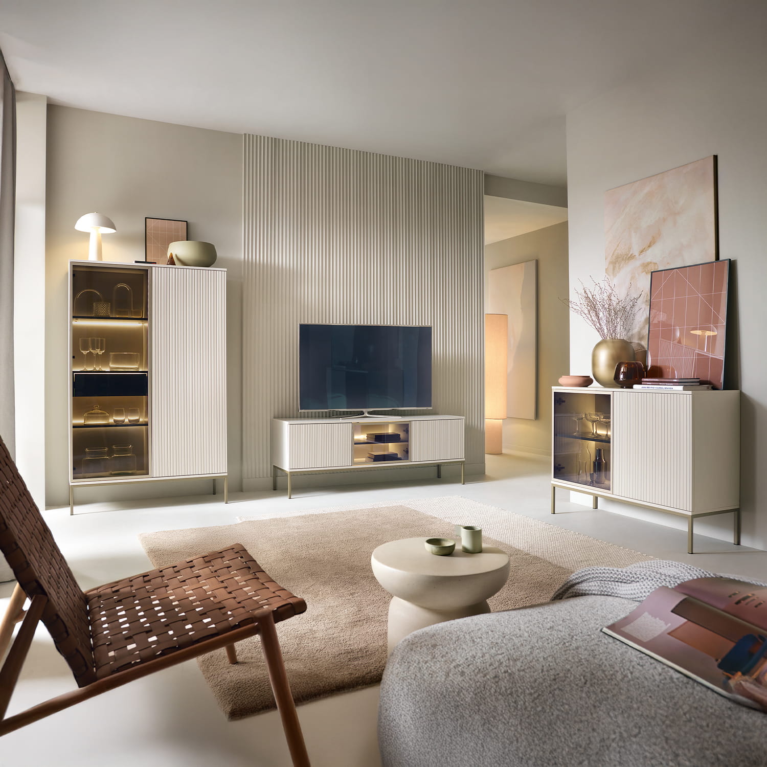 Zestaw mebli do salonu SIENTO w kolorze kaszmir – spójny styl i wygoda na co dzień