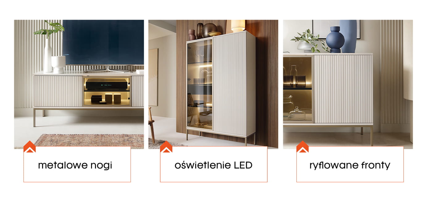 Szukasz spójnego zestawu mebli w jasnym, eleganckim wykończeniu? Postaw na SIENTO w kolorze kaszmir – nowoczesne formy, praktyczne rozwiązania i funkcjonalność zamknięte w jednej kolekcji.