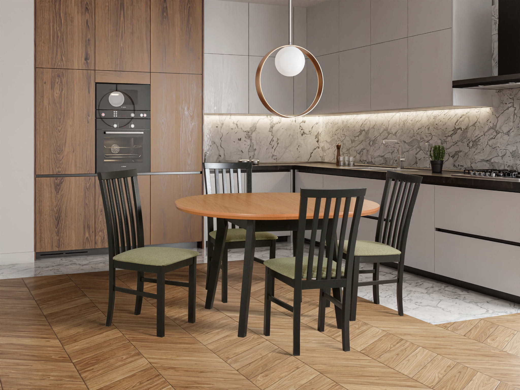 SOLO 4 z blatem w kolorze dąb naturalny i krzesłami INTER 1