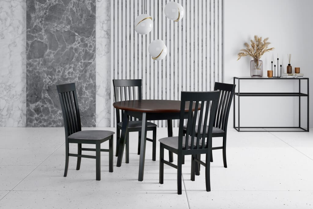 Stół SOLO 4 z blatem w kolorze orzech i krzesłami INTER 2