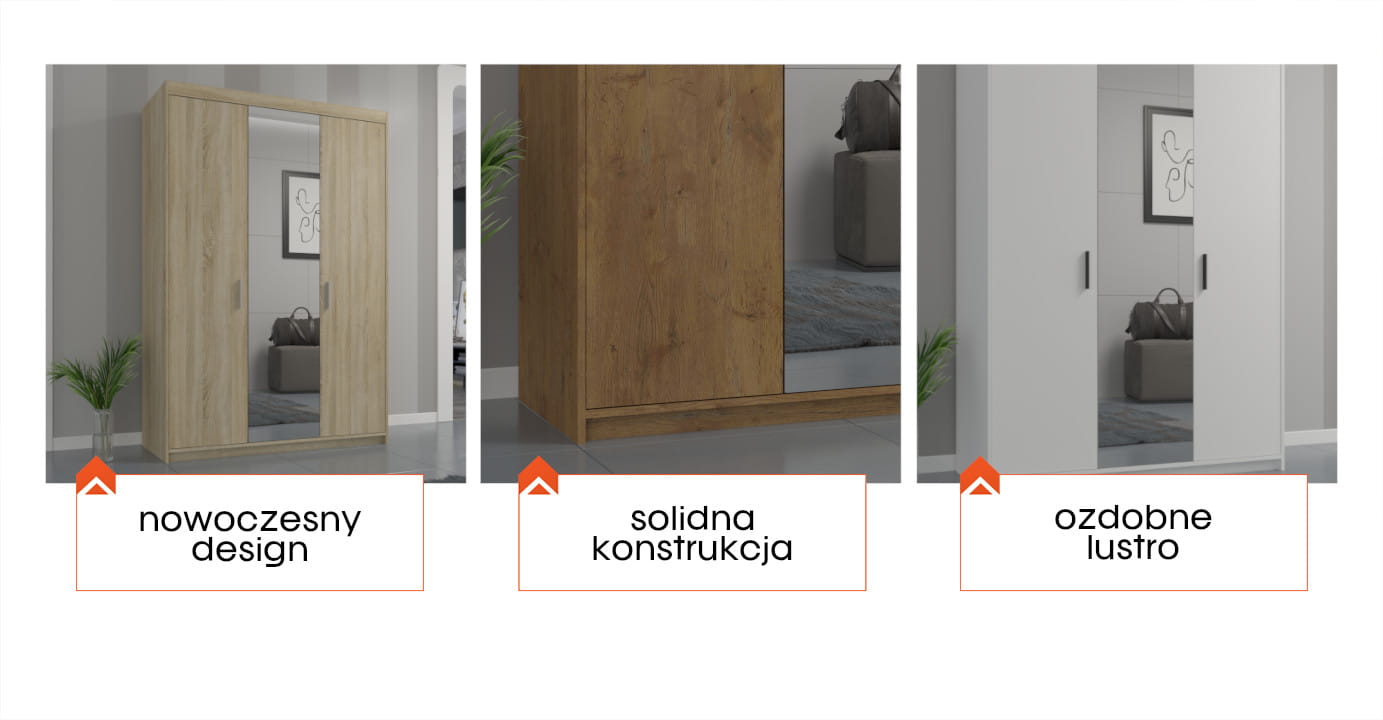 Szafa trzydrzwiowa z lustrem NELA 133 cm
