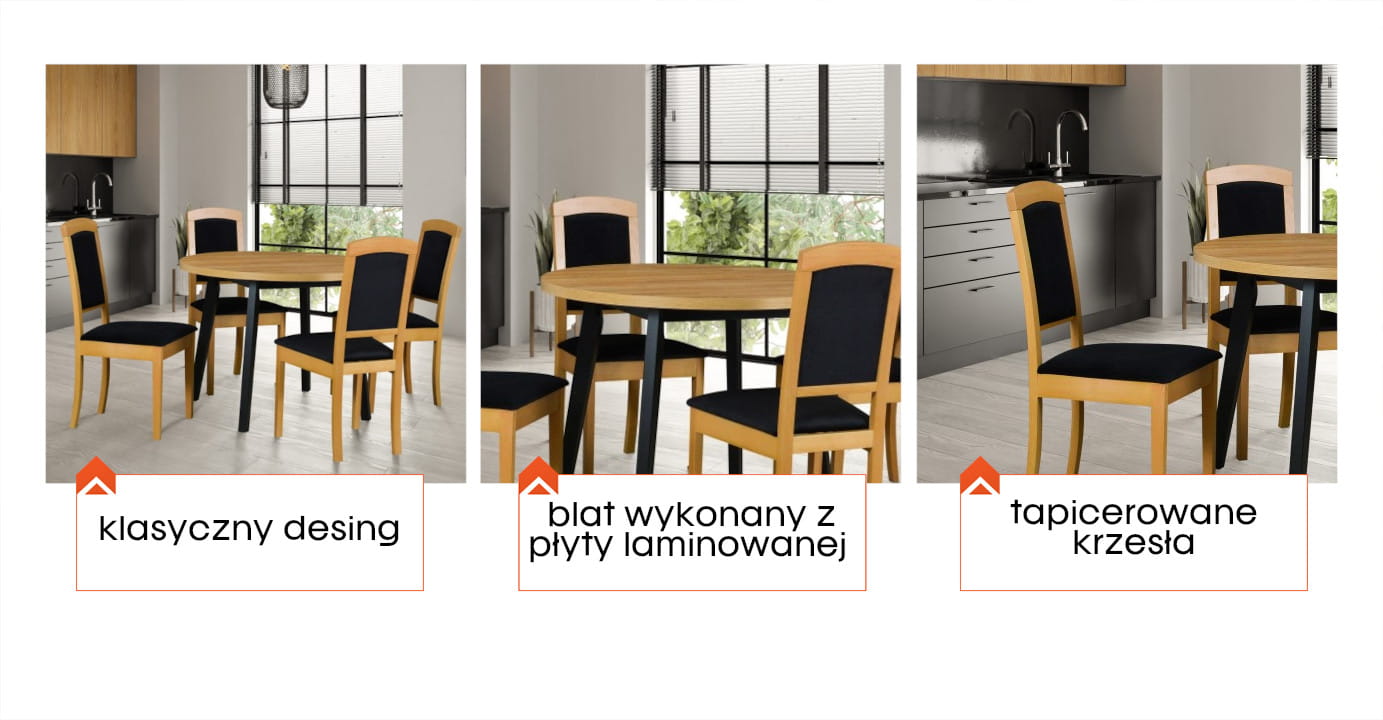 Zestaw mebli do jadalni składający się ze stołu LOSO 3 i czterech krzeseł tapicerowanych LAZIO 14 to harmonijne połączenie elegancji, komfortu i funkcjonalności, które sprawi, że Twoja jadalnia stanie się sercem domowego życia. Całość zestawu tworzy harmonijną kompozycję, która doda uroku i funkcjonalności Twojej jadalni. Zapraszając rodzinę i przyjaciół do wspólnych posiłków przy tym zestawie mebli, stworzysz niezapomniane chwile pełne wykwintnych smaków i ciepłej atmosfery, które będą towarzyszyć Ci przez wiele lat. To nie tylko meble, to centrum domowego życia, gdzie każdy posiłek staje się wyjątkowym doświadczeniem.