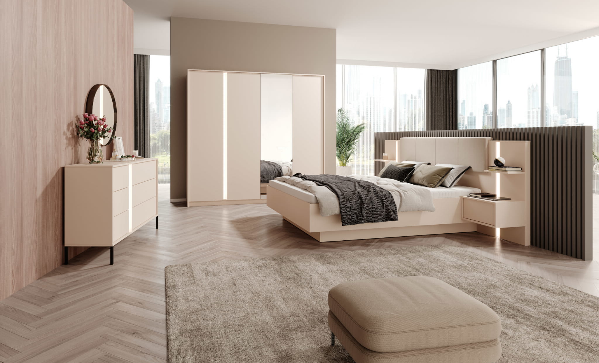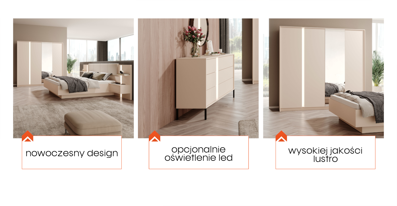 Odkryj kolekcję mebli DASH - nowoczesna elegancja w kolorze beżowym. Szafa z efektownym oświetleniem LED, łóżko ze stolikami nocnymi i stylowa komoda to nie tylko funkcjonalne elementy, ale także wyjątkowe akcenty, które nadadzą Twojemu wnętrzu wyrafinowanego charakteru. DASH to propozycja dla tych, którzy cenią nie tylko designerski styl, ale także praktyczność. Odkryj, jak kolekcja DASH może przekształcić Twoje wnętrze, tworząc harmonijną przestrzeń pełną stylu i komfortu.