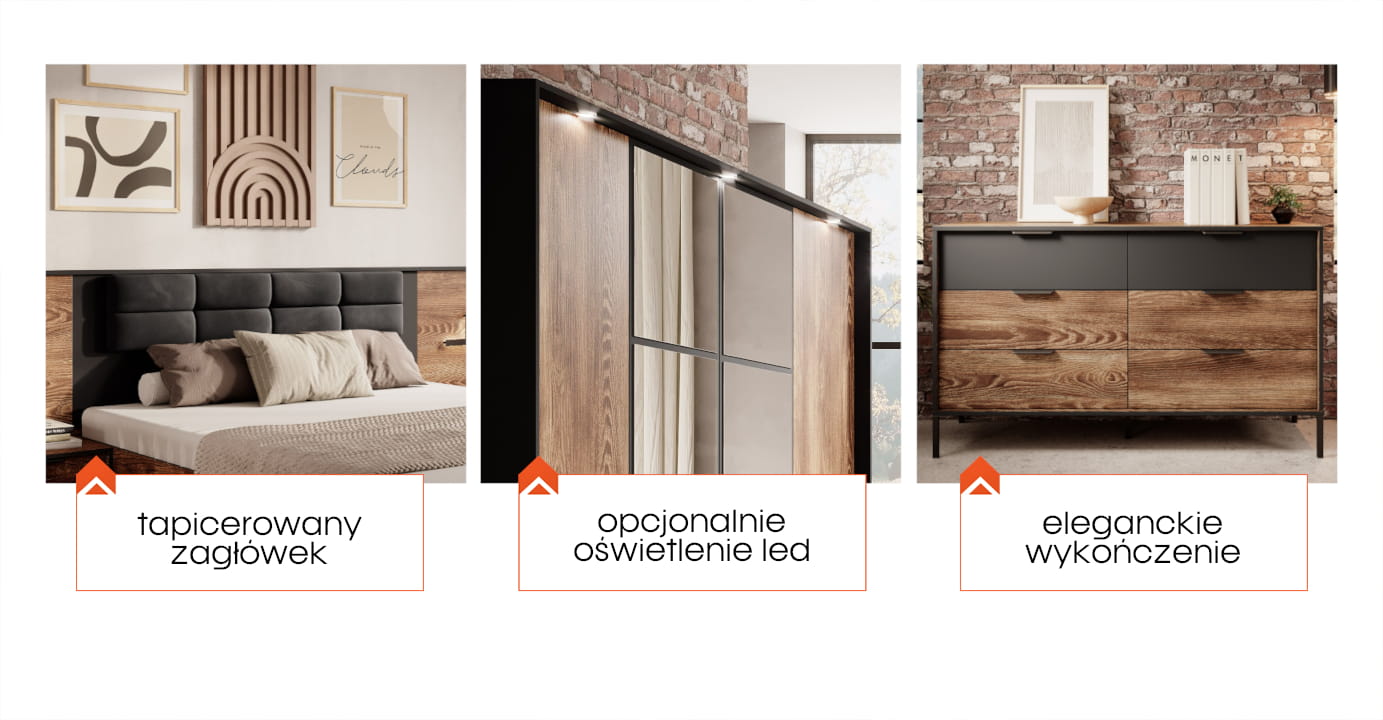 Zestaw mebli do sypialni solidnej konstrukcji MILTANO